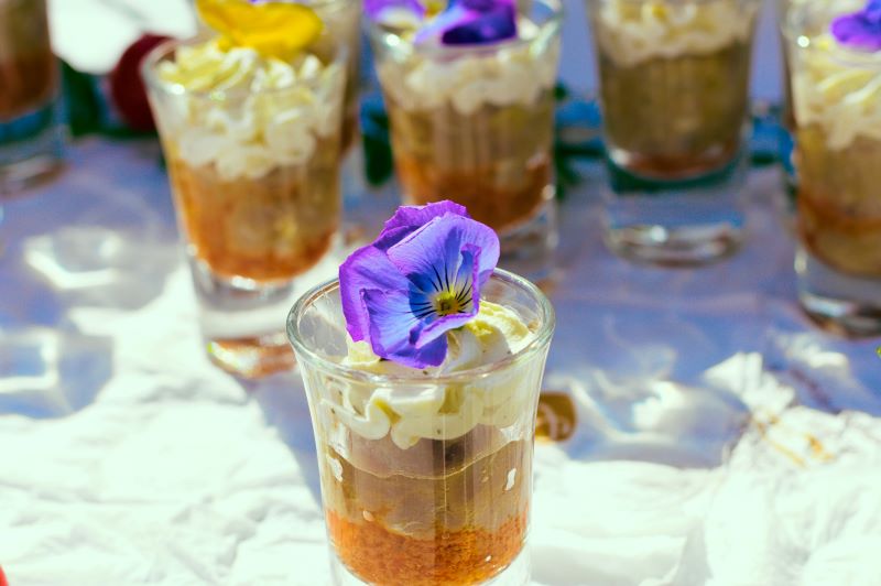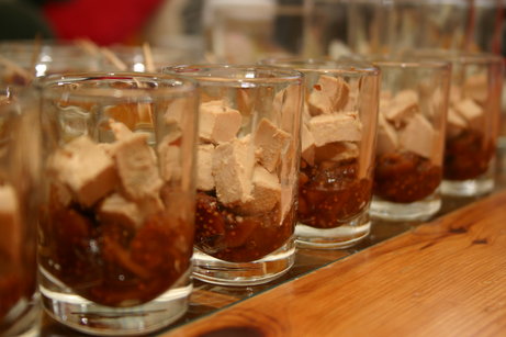 Verrines de foie gras, pain d'épices et compote de figues