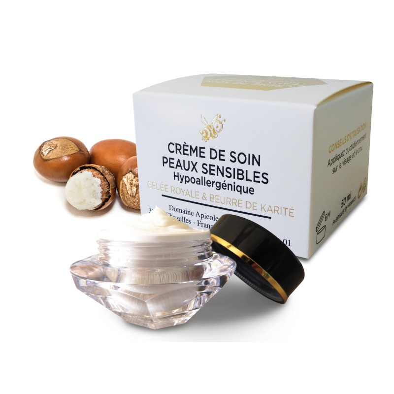 Spécialement conçue pour les peaux sensibles et sujettes aux rougeurs. Découvrez vite cette crème de soin hypoallergénique. À base de Gelée Royale, elle a été conçue spécialement pour apaiser au quotidien les peaux les plus sensibles. Véritable crème de jour à la texture fondante, sa formulation est riche en Karité, Cire d’Abeille et Huile d’Olive, pour le plus grand respect des épidermes les plus fragiles.