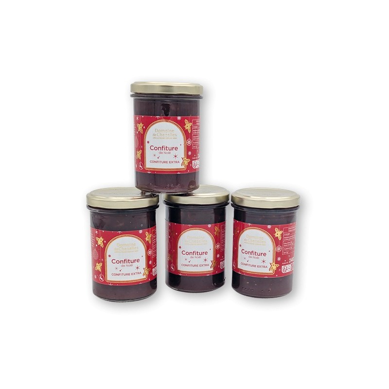 Ingrédients : Sucre de canne, Fraise, Griotte, Framboise, Groseille, Raisin sec, Noix, Noisette, Jus concentré de citron, Pectines de fruits. Préparée avec 55 g de fruits pour 100 g. Teneur totale en sucres : 63 g pour 100 g.