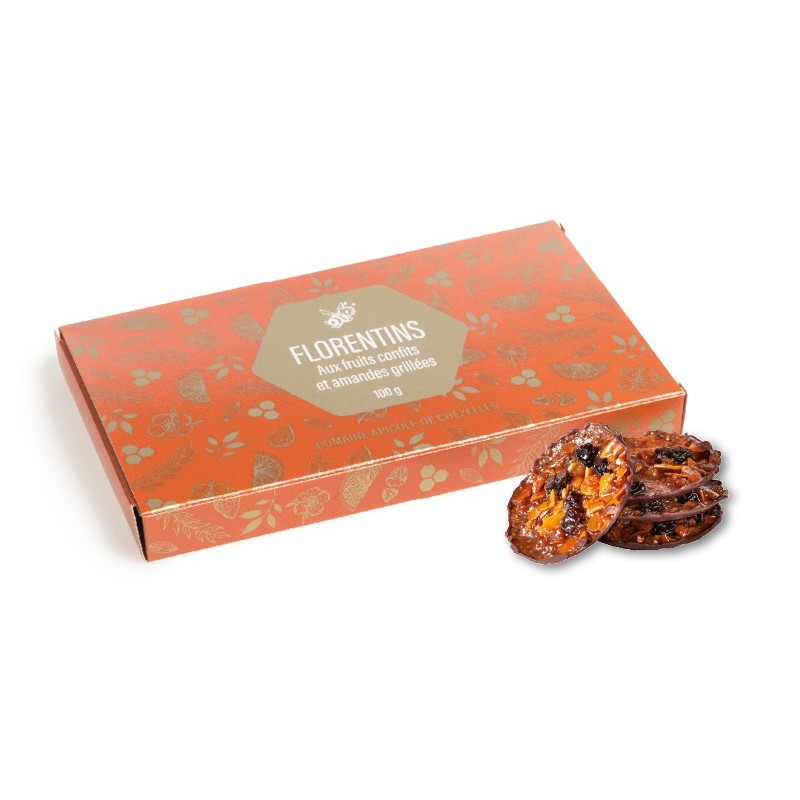 Disponibles en étui de 12 florentins (100g ) et 36 florentins (300g).