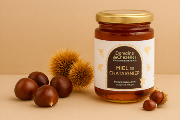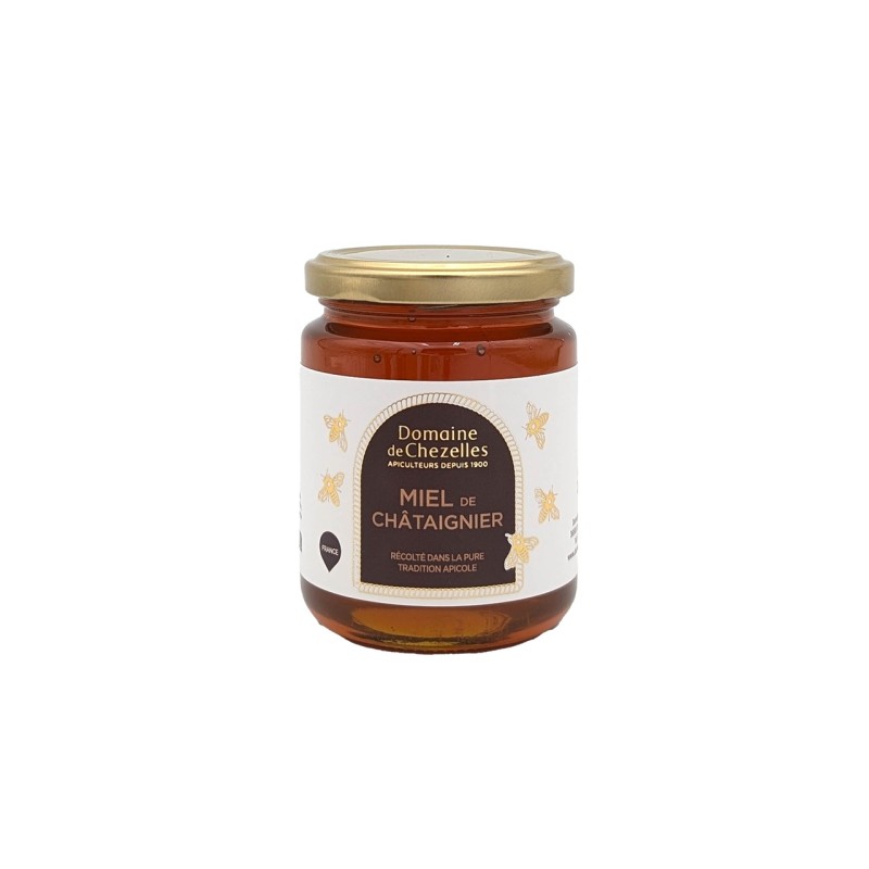 Le miel de châtaignier est un miel de forêt, mélange de miel entre le nectar des châtaigniers et le miellat, secrété par les pucerons. Il est issu de l’arbre éponyme que l’on retrouve essentiellement en Allemagne, en Italie et en France (en Corse notamment). Les abeilles récoltent le précieux nectar sur les fleurs du châtaignier le printemps venu, et cela durant une courte période – on parle d’une quinzaine de jours – entre juin et juillet avant que les apiculteurs ne prennent le relais.