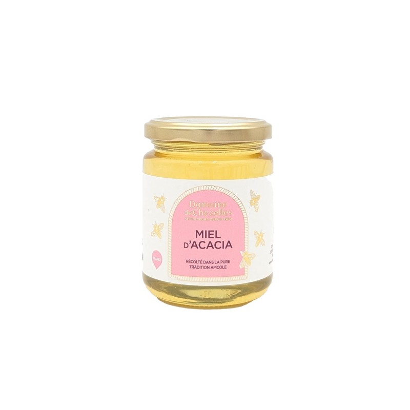 Le miel d’acacia est un miel monofloral récolté par les abeilles butineuses sur les fleurs blanches des acacias. Cet arbre mellifère pousse sur le tout territorial hexagonal, mais on trouve majoritairement en Bourgogne, dans le Bassin parisien, dans le Centre ou en Aquitaine. L’acacia se distingue par ces petites fleurs jaunes (par ailleurs comestibles) dont se dégagent des effluves délicates.