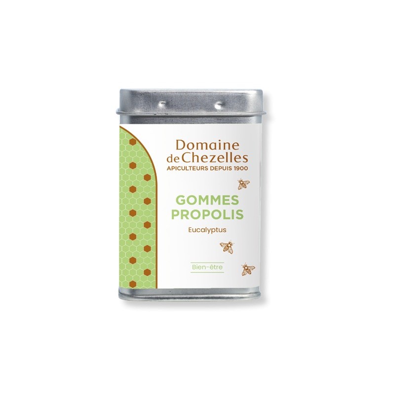 Ingrédients : Eucalyptus : gomme d’acacia naturel 45 %, miel, propolis 4 % d’extrait à 70 %, extraits végétaux, huile essentielle d’eucalyptus.